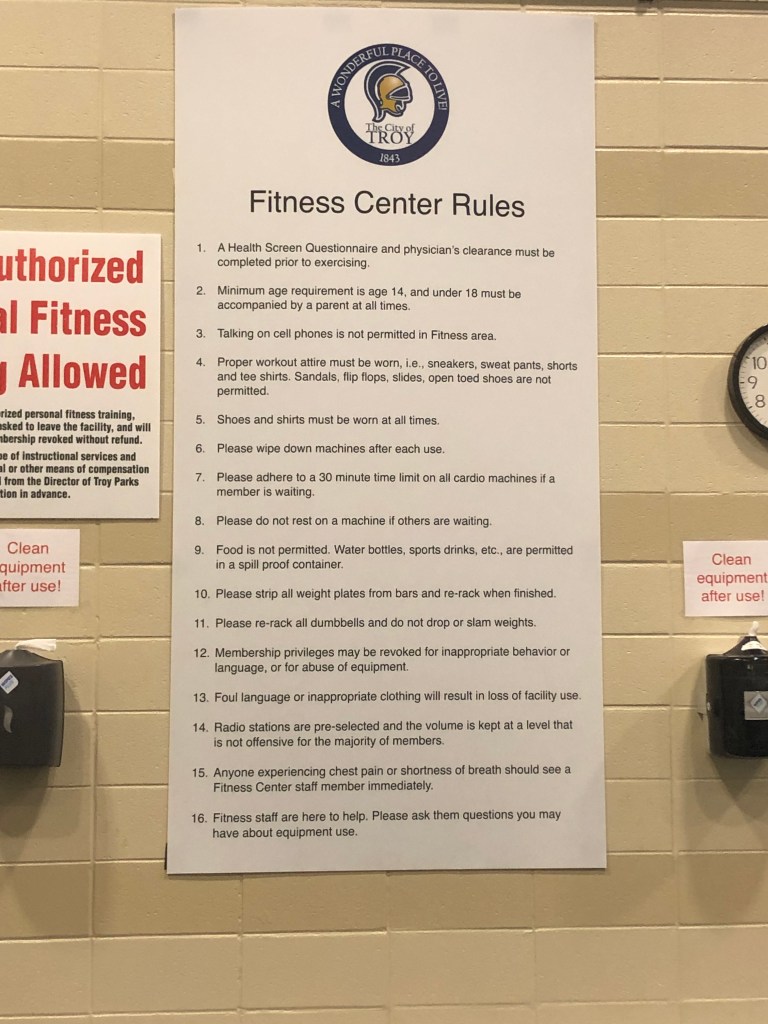 This week, I am going to take you inside where I work and tell you a little about what I do! Since my blog is about health and fitness, it would only be appropriate that I work at a gym. I have worked at the Troy Parks and Recreation center for a little over a year now.